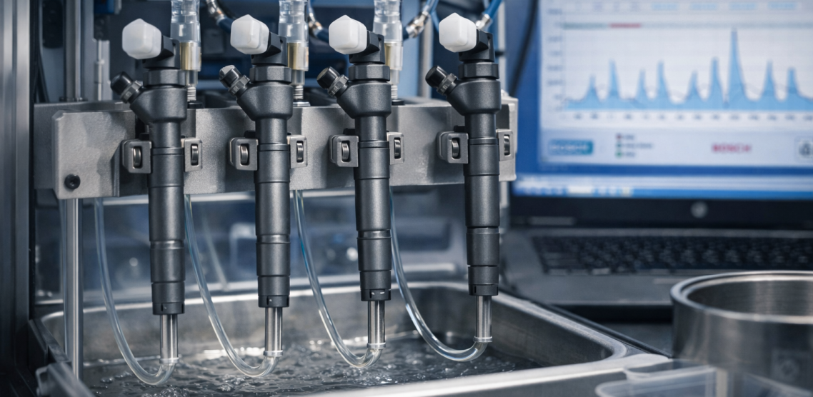Fachgerechte Prüfung, Reinigung und Überholung von Common-Rail Injektoren auf modernem Prüfstand.